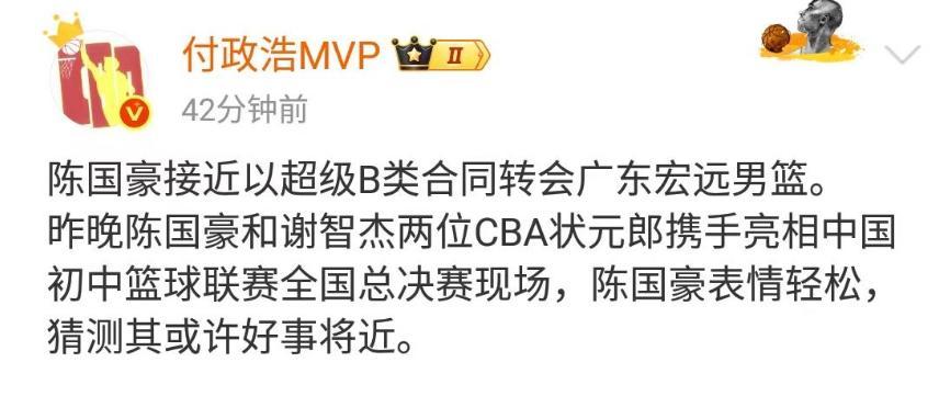 广东男篮最近的消息比较多,主要还是因为徐昕转会引发了球迷关注,广东男篮参与了北控男篮主导的多方谈判中。就在日前,广东男篮确定了今年夏天的首笔补强,据体育记者付政浩透露,广东男篮已经和北控男篮完成交易,陈国豪接近加盟广东男篮,只待CBA官方对这笔交易完成审核后,陈国豪就会正式加盟广东男篮效力。